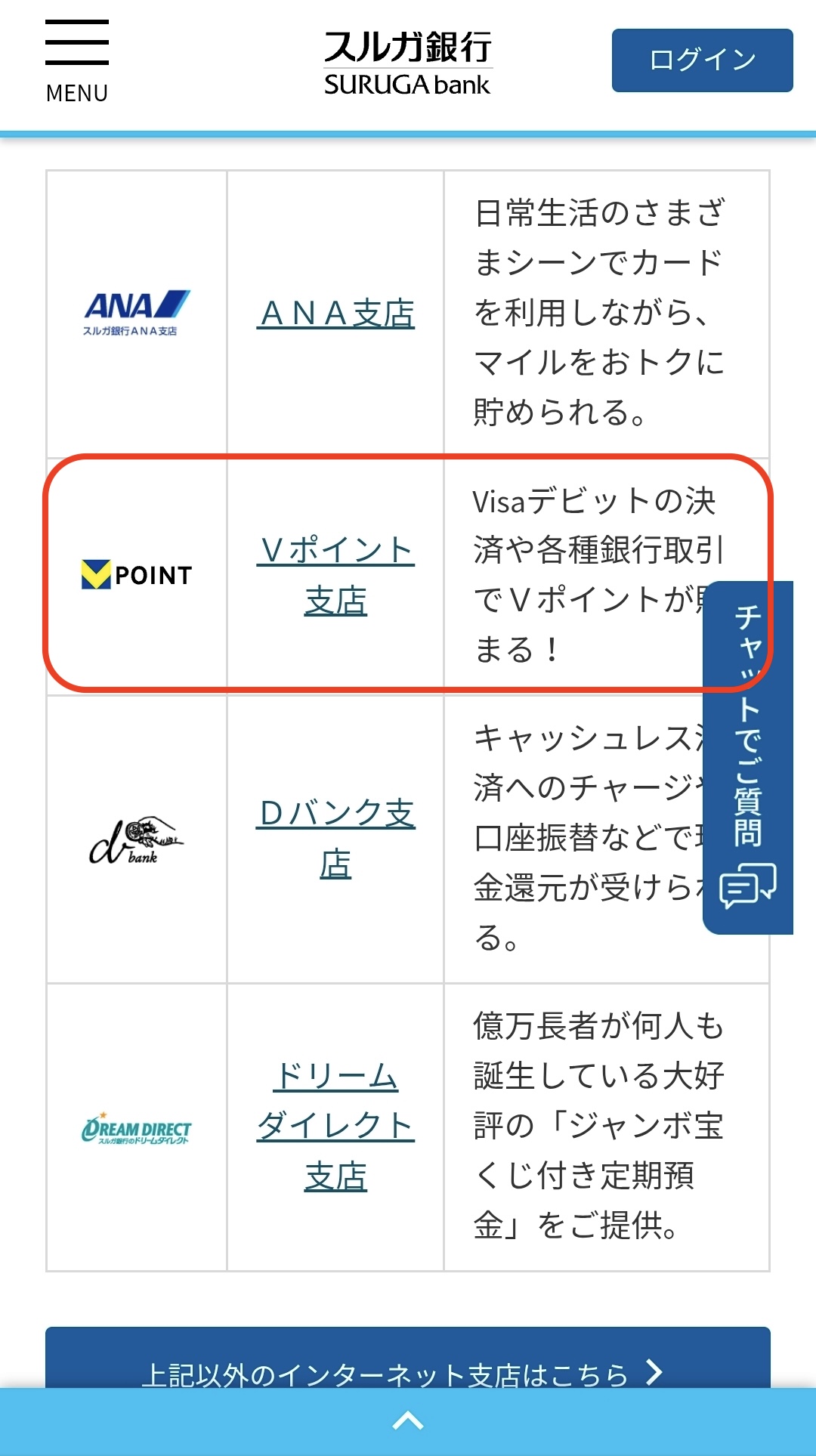 スルガ銀行アプリをダウンロードして「Vポイント支店」を選択